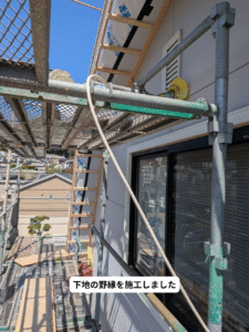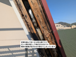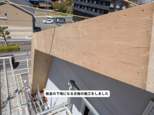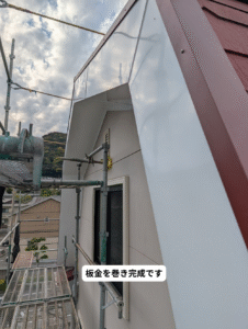雨が侵入して木を腐らせ破風が落ちてしまったので、下地をつくって板金で巻く工事をさせていただきました。